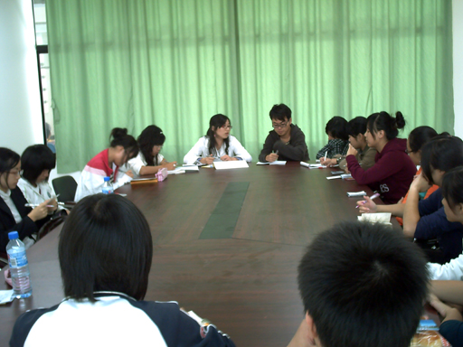 1127中午1230分在人文A-404教室举行了06级至08级英语系团支书会议,英语系团总支书记李婧老师主持会议。出席会议的还有副书记李欣同学、以及各班团支书。